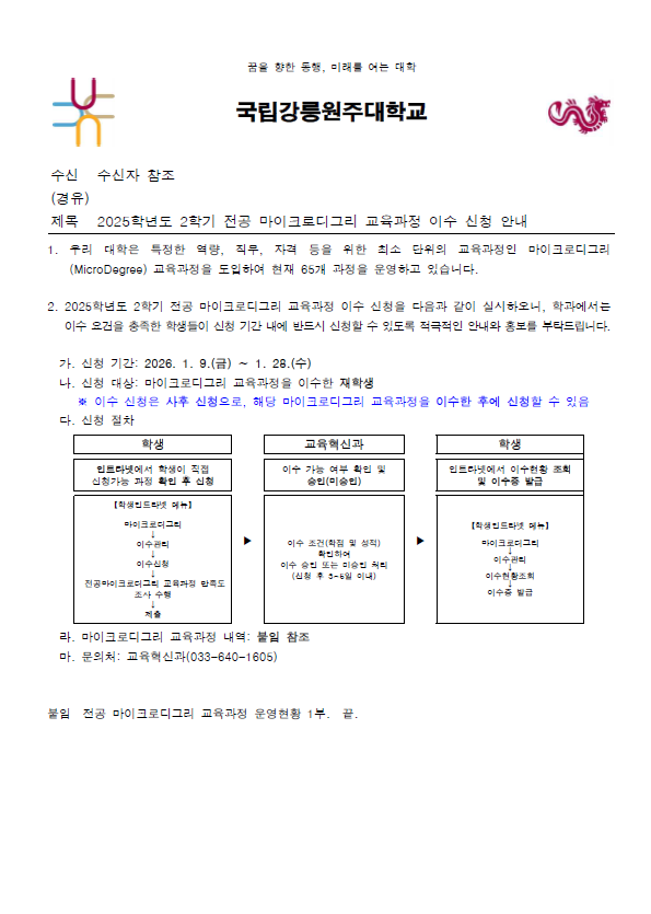 2025학년도 2학기 전공 마이크로디그리 교육과정 이수 신청 안내